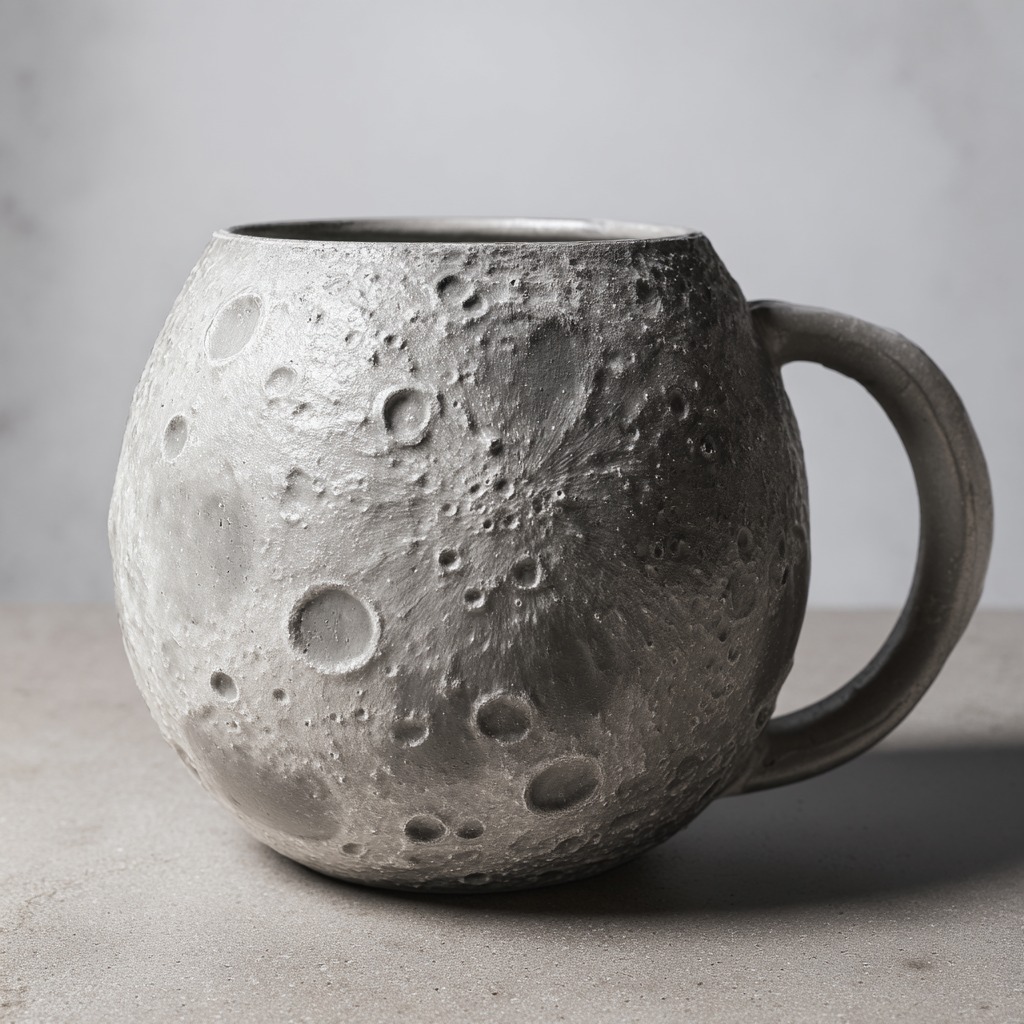 • Moon Mug: Authentic crater texture with matte gray glaze