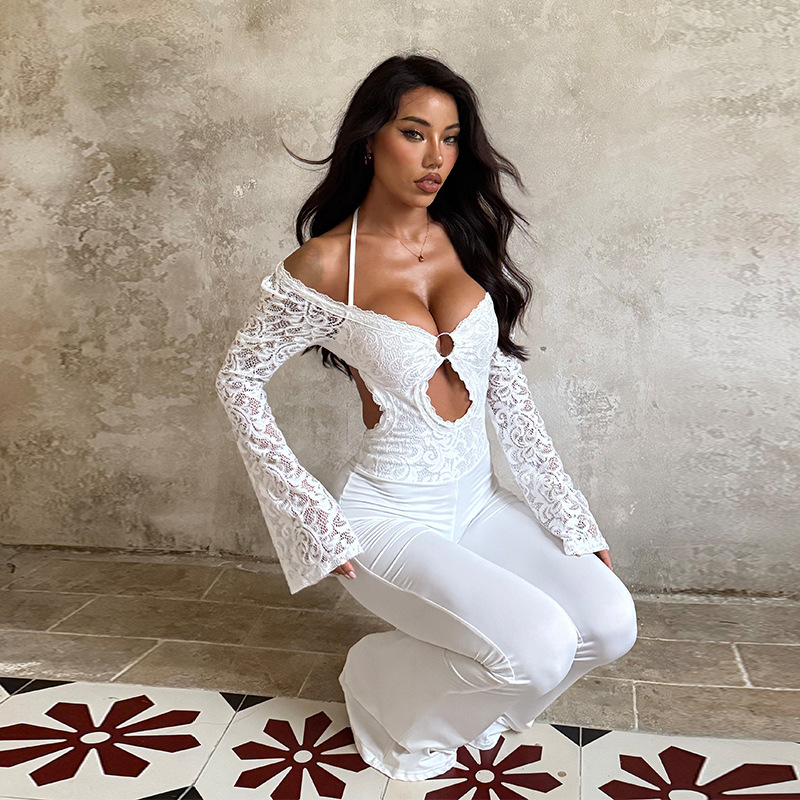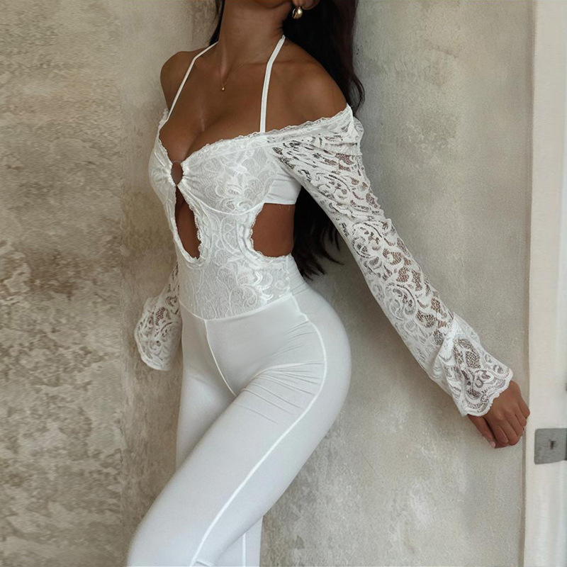 Chic Slim-Fit Long Sleeve Lace Open Back Jumpsuit