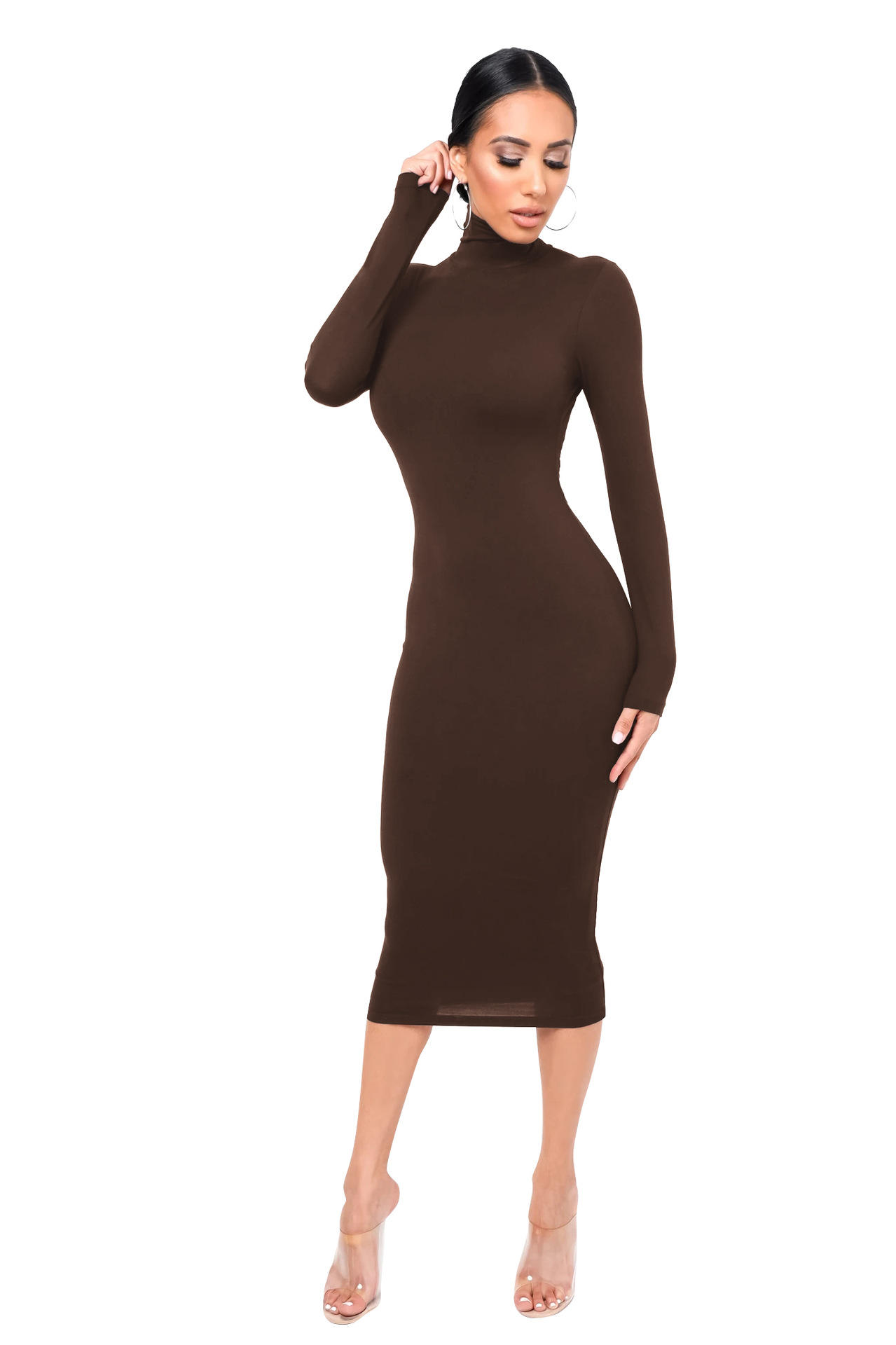 Sexy Turtleneck Bodycon Dress: Fleece-Lined & Slim-Fit