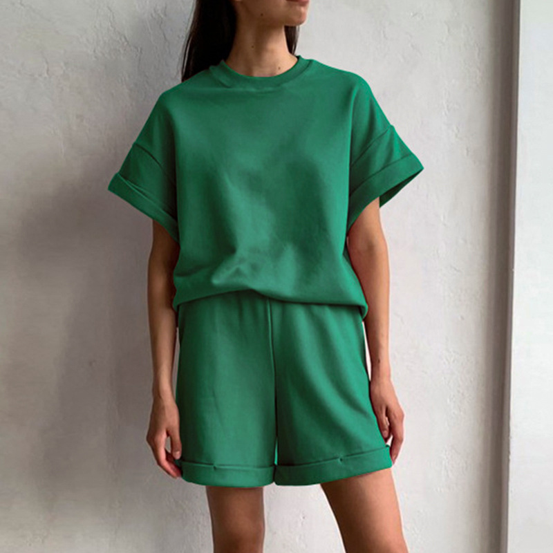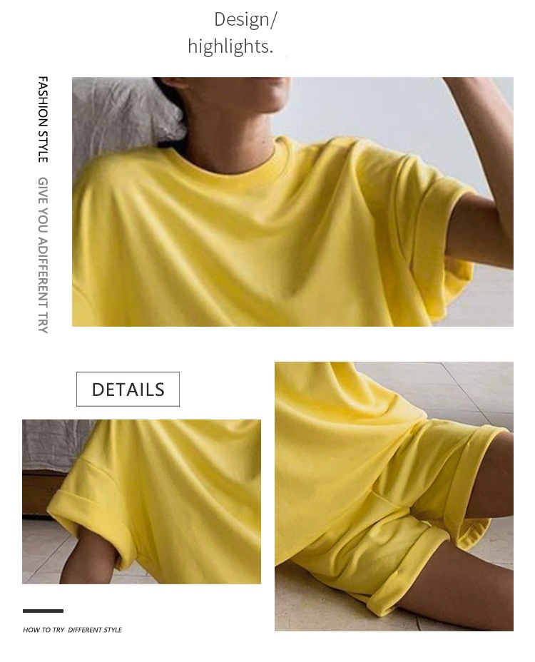 Women's Loose T-Shirt Set: Simple Comfortable Short Sleeve Top + Shorts