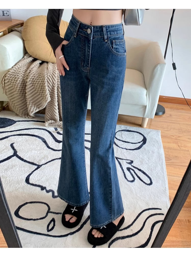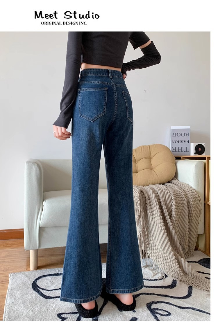 Women's Vintage High-Waisted Bootcut Wide-Leg Floor-Length Jeans